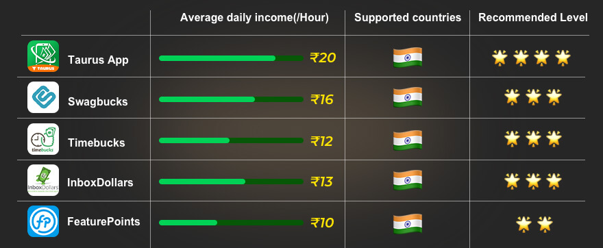 - Cons: Video watching earns minimal points, app trial offers can be inconsistent. Choosing the right platform depends on your preferences. If you enjoy mobile games and want the fastest possible access to your earnings with a low threshold, Taurus is hard to beat with its âč10 instant withdrawal via UPI and âč100 bonus. If you prefer a wider variety of micro-tasks on a desktop, Swagbucks or Timebucks might be worth exploring, keeping the higher payout thresholds and lower video earnings in mind.